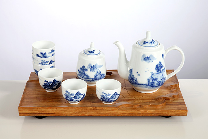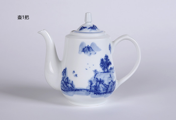 8頭手繪青花綠茶具山高水長(zhǎng)