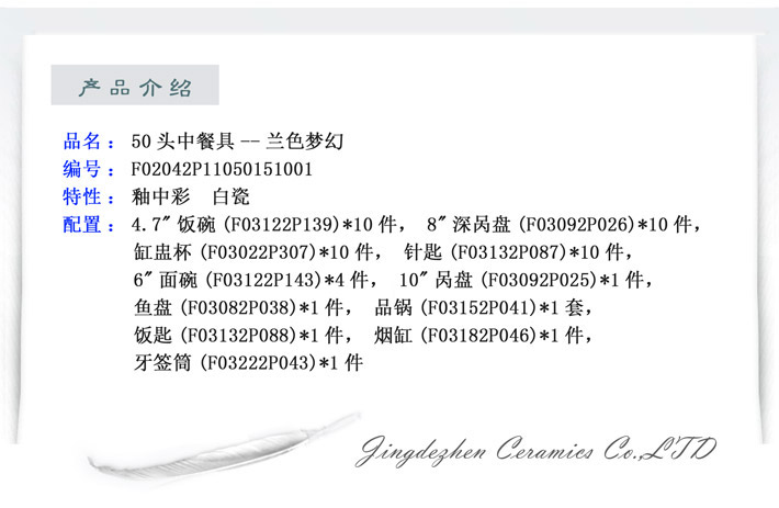 50頭中餐具--蘭色夢(mèng)幻