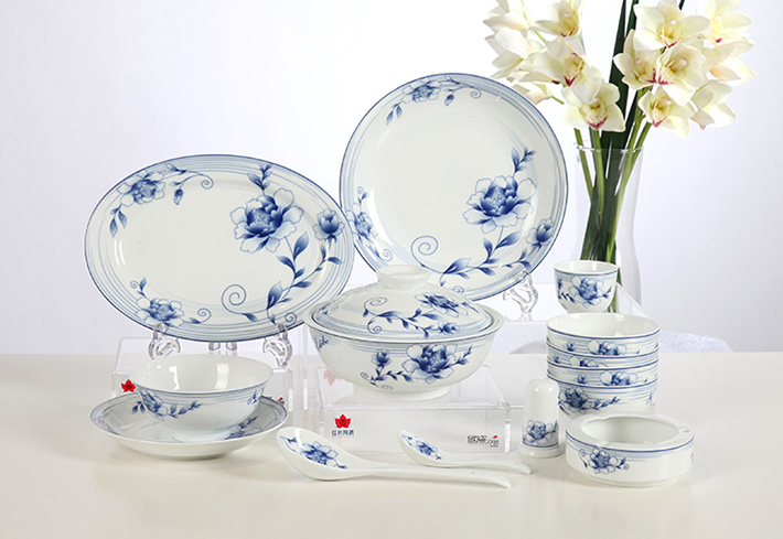 56頭青花玲瓏花卉中餐具